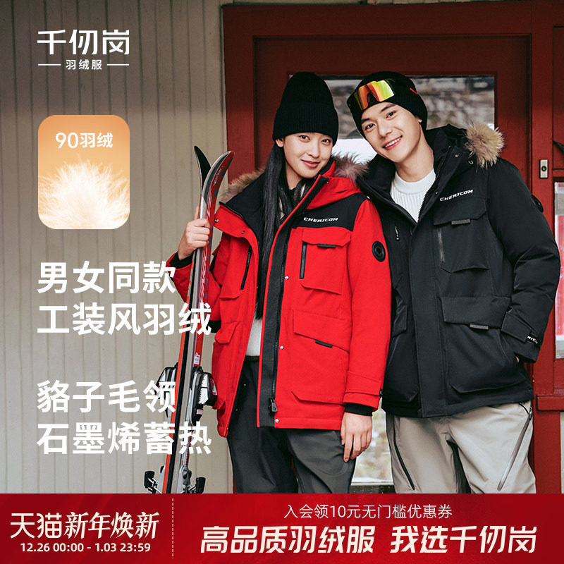 千仞岗冬季新款情侣工装女士派克羽绒服户外运动貉子毛领保暖外套