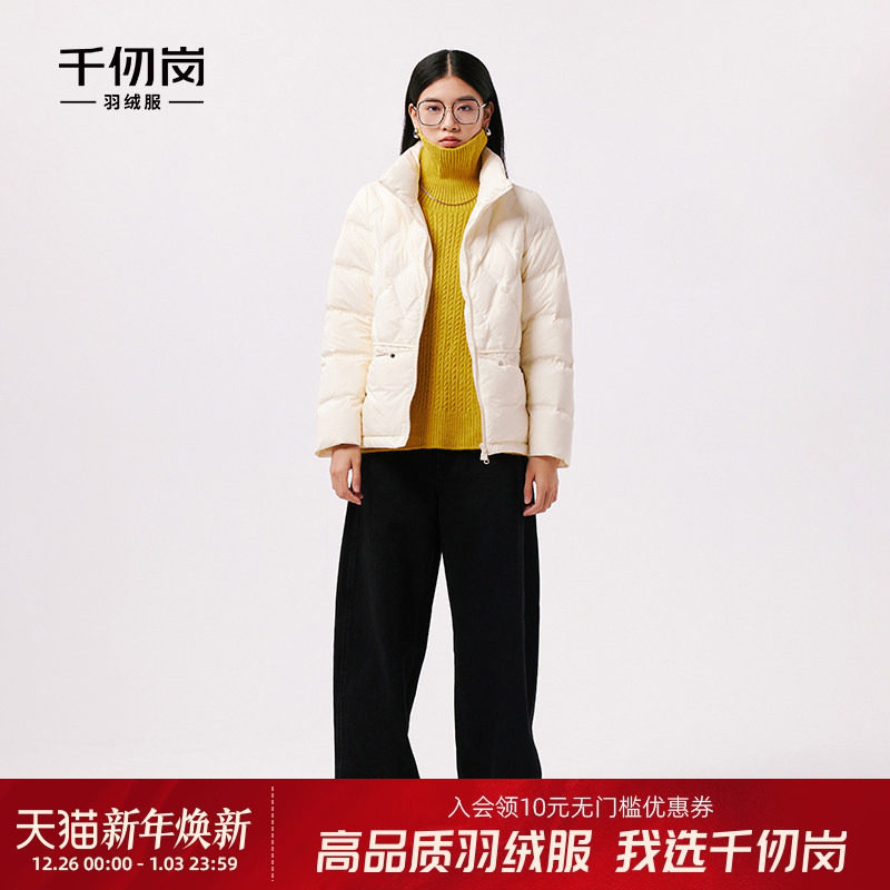 千仞岗2025秋冬新款羽绒服短款立领保暖通勤简约气质纯色外套女款