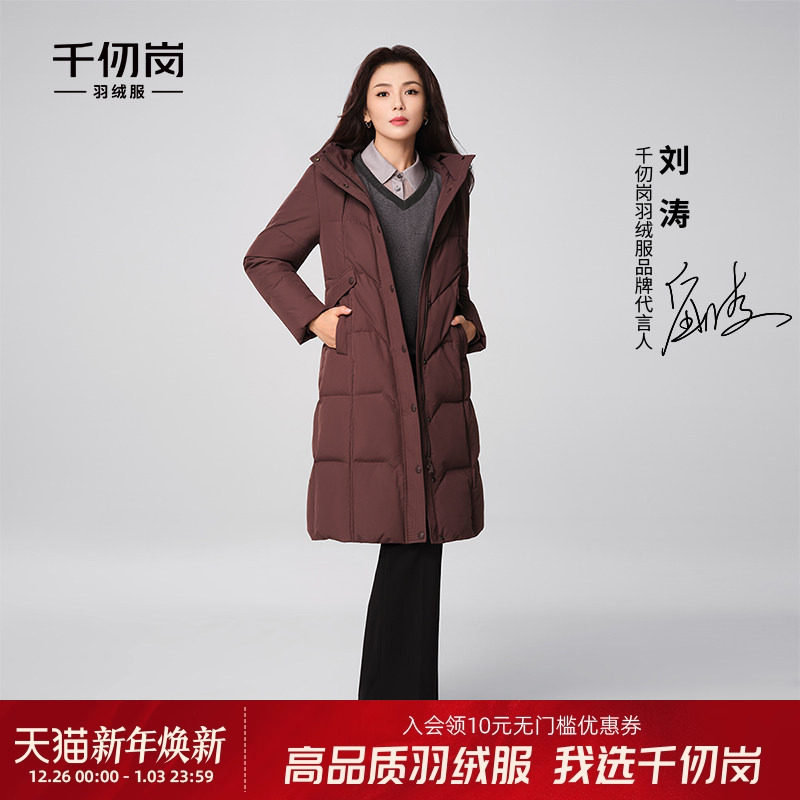 【刘涛同款】千仞岗冬季新款长款休闲连帽羽绒服妈妈装女外套保暖