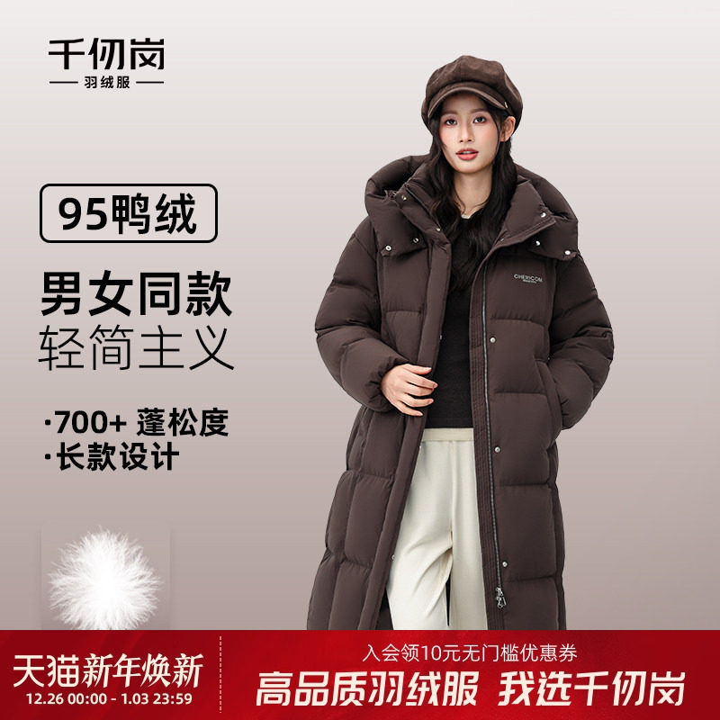 【95鸭绒】千仞岗2025冬季新款羽绒服长款保暖男女同款厚外套上衣