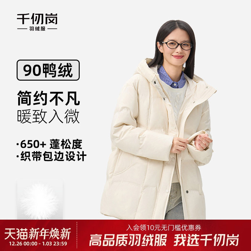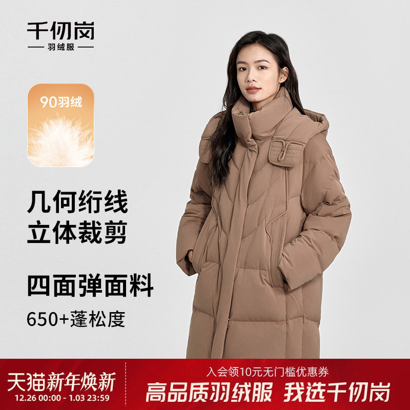 千仞岗2025秋冬新款羽绒服长款连帽保暖休闲简约女款外套经典气质