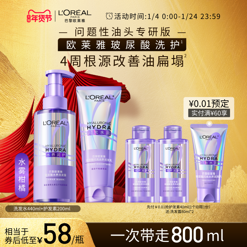 欧莱雅玻尿酸洗发水护发素洗护套装控油蓬松去油清洁洗发露洗头水