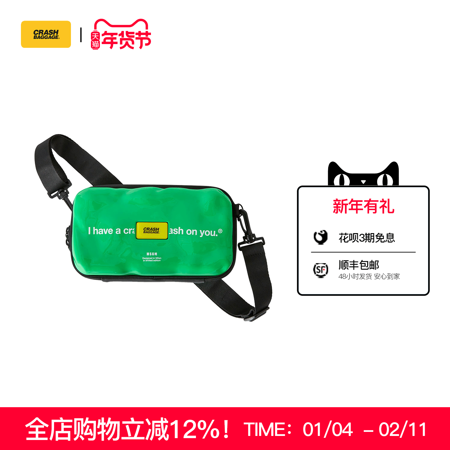 Crash BaggageMSGM【联名款】斜挎包男胸包潮牌女包包挎包相机包