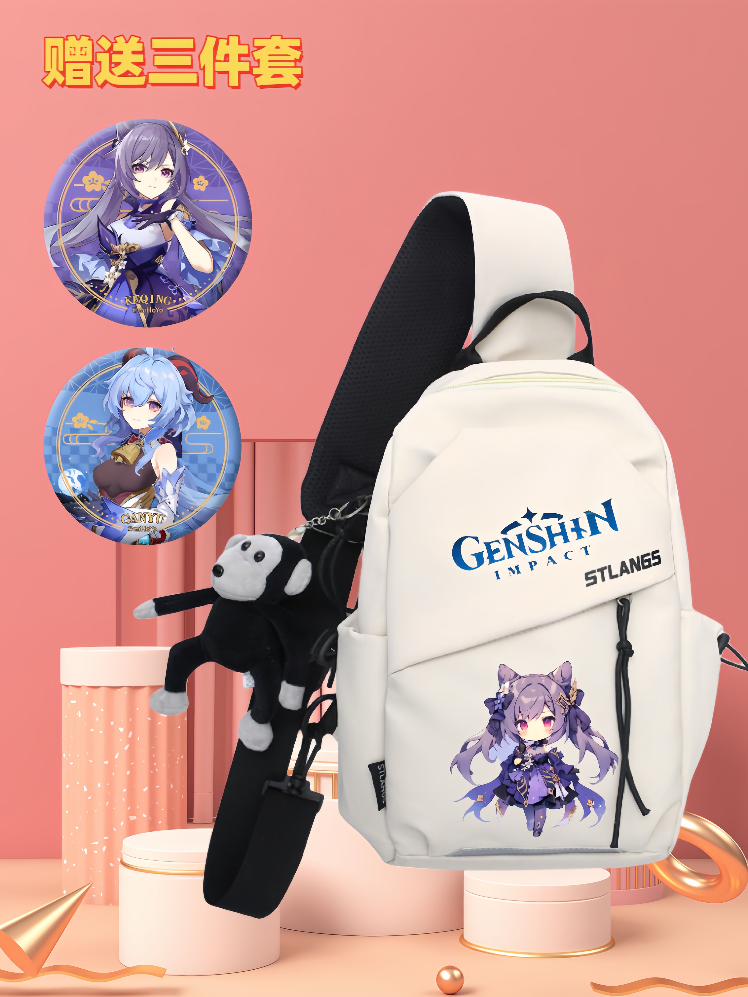 原神联名胡桃散兵斜挎包男胸包斜挎腰包女潮ins潮牌学生新款挎包