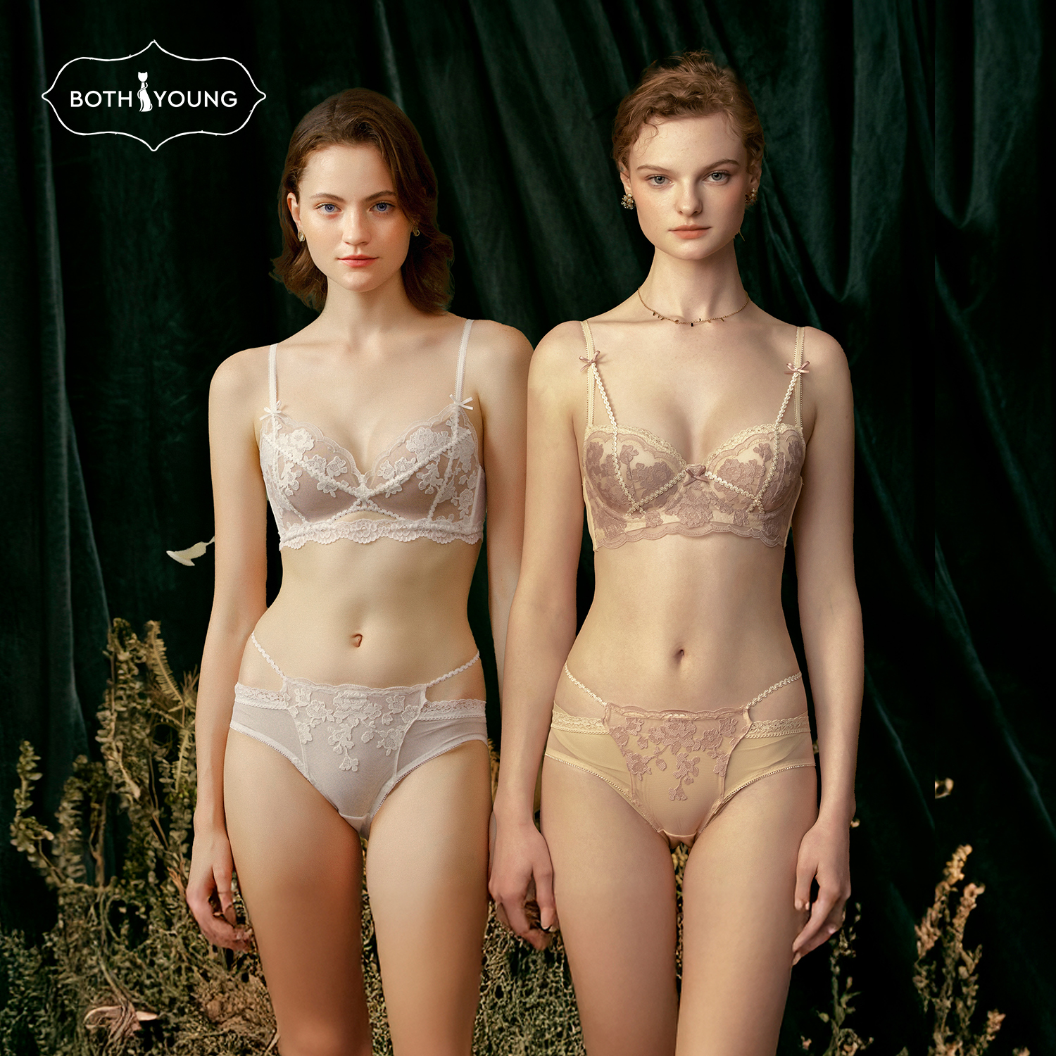 BOTHYOUNG细肩带可外穿新款胸罩法式小胸内衣女性感蕾丝文胸套装