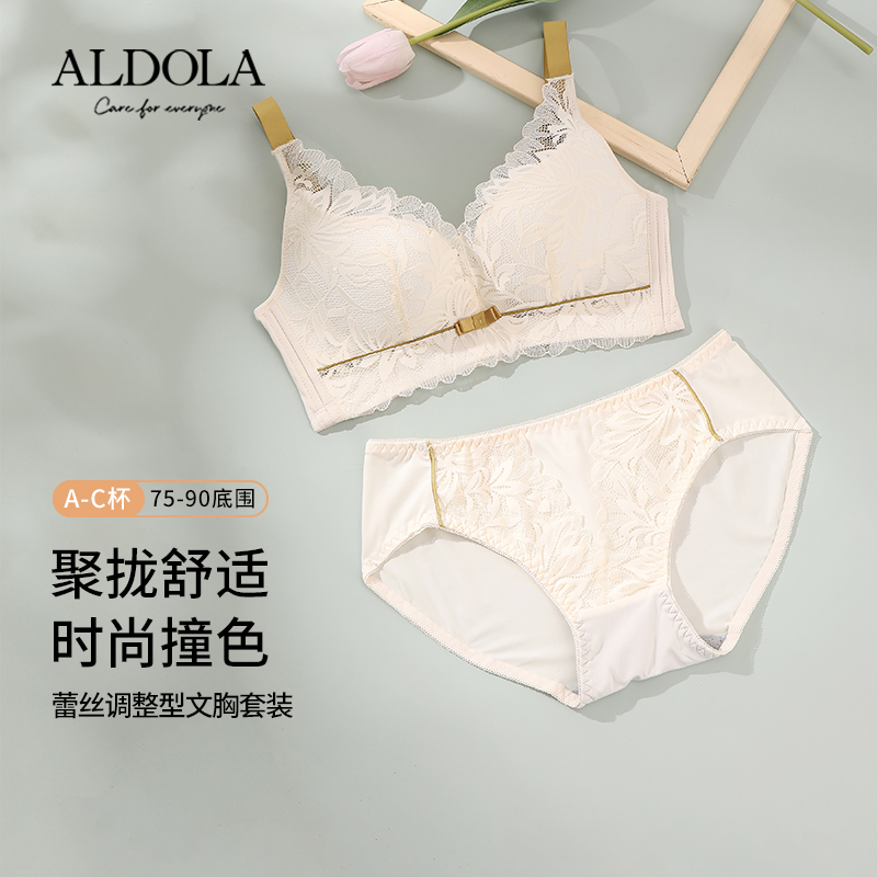 内衣女性感蕾丝聚拢调整型无钢圈文胸厚薄款套装小胸罩收副乳上托