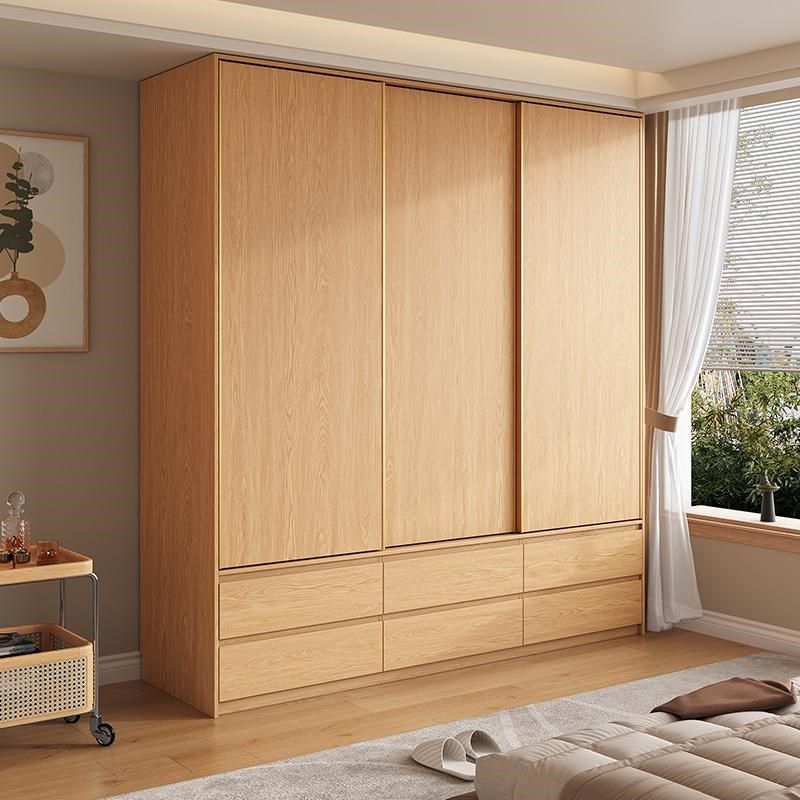 全实木定制衣柜推拉门家用卧室小户型现代简约主卧趟门橡木大衣橱