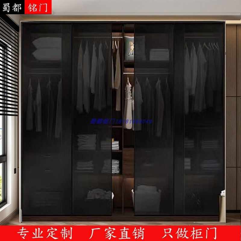 衣柜推拉门柜门定制移门钢化玻璃壁橱滑动高光多层实木板现代简约