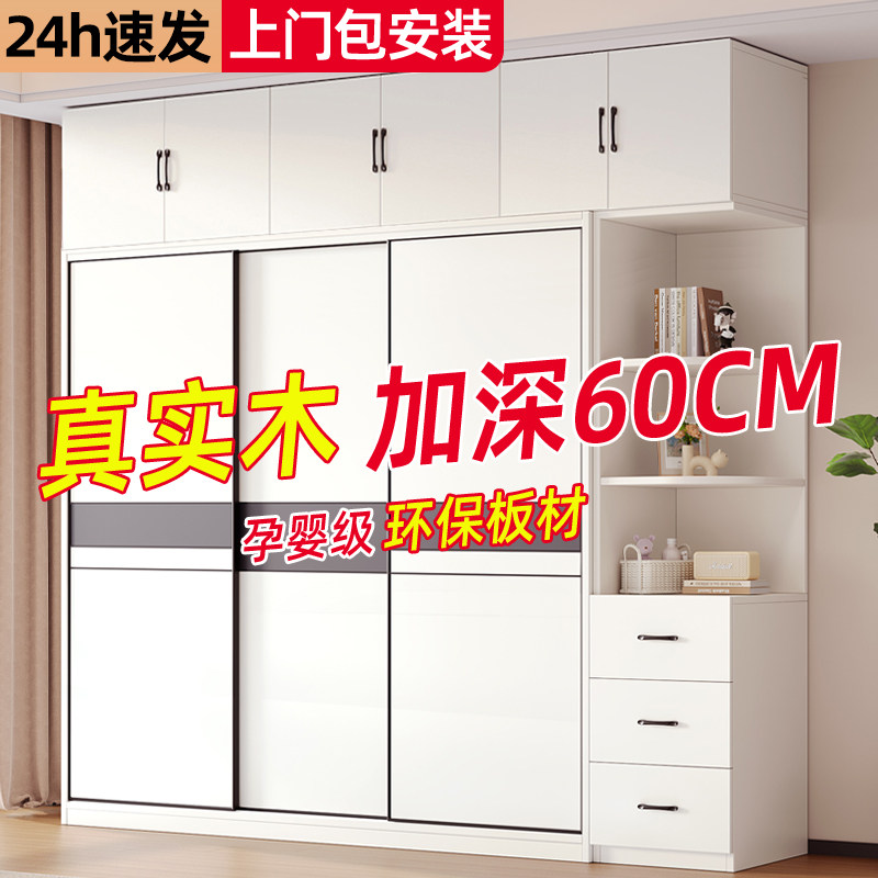 衣柜家用卧室全实木推拉门出租房用新款衣橱爆款简易儿童定制柜子