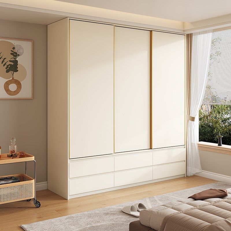 推拉门衣柜家用卧室柜子实木生态板滑移门衣柜奶油灰趟门衣橱定制