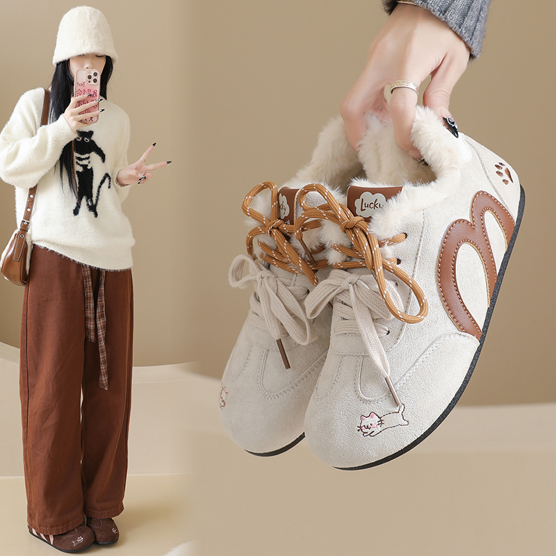 大棉冬季韩版新款阿甘鞋女2025刺绣学生运动透气休闲厚底Y16-2