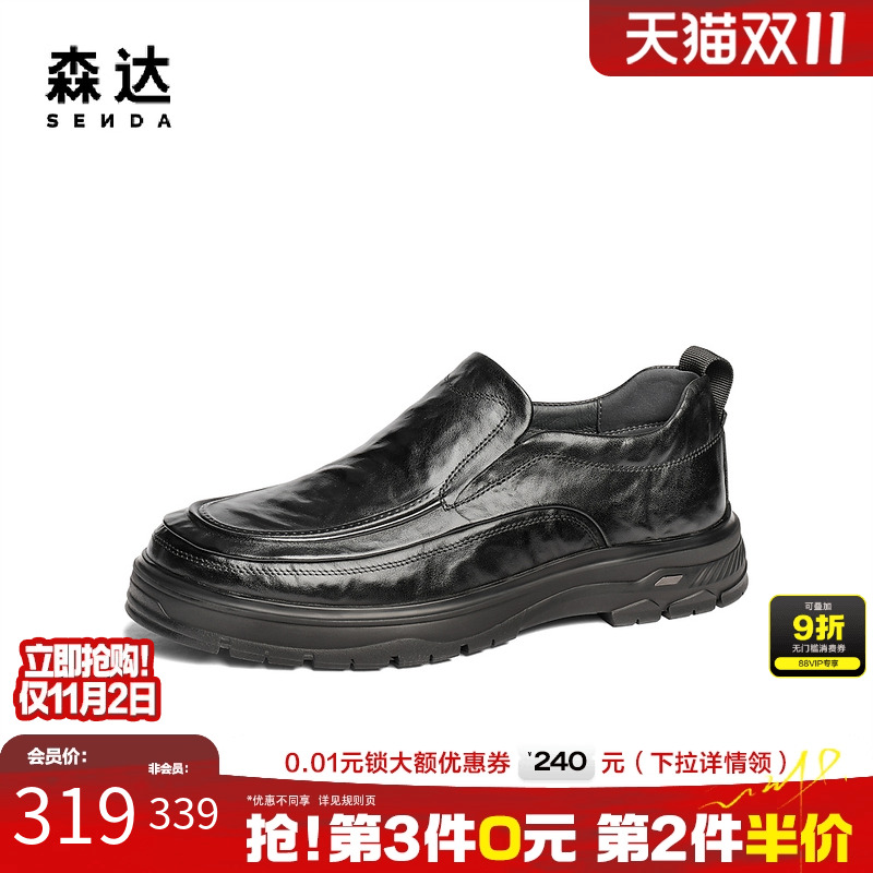 森达休闲皮鞋男2025春季新款复古做旧一脚蹬舒适懒人皮鞋JDZ16AM5