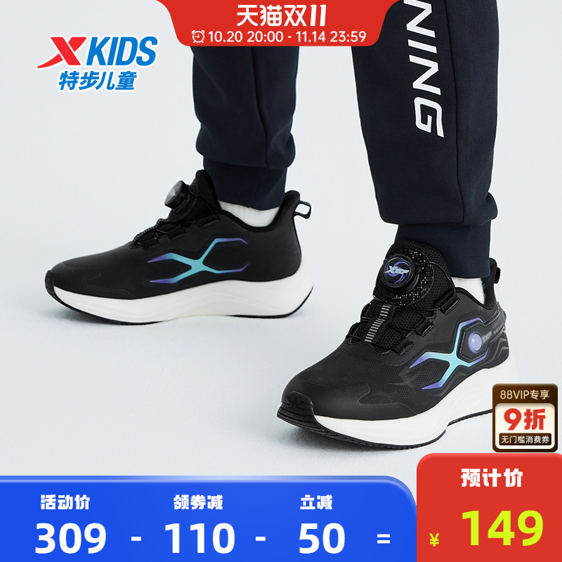 特步童鞋男童跑步鞋秋冬新款儿童旋转扣革面跑鞋中大童防滑运动鞋