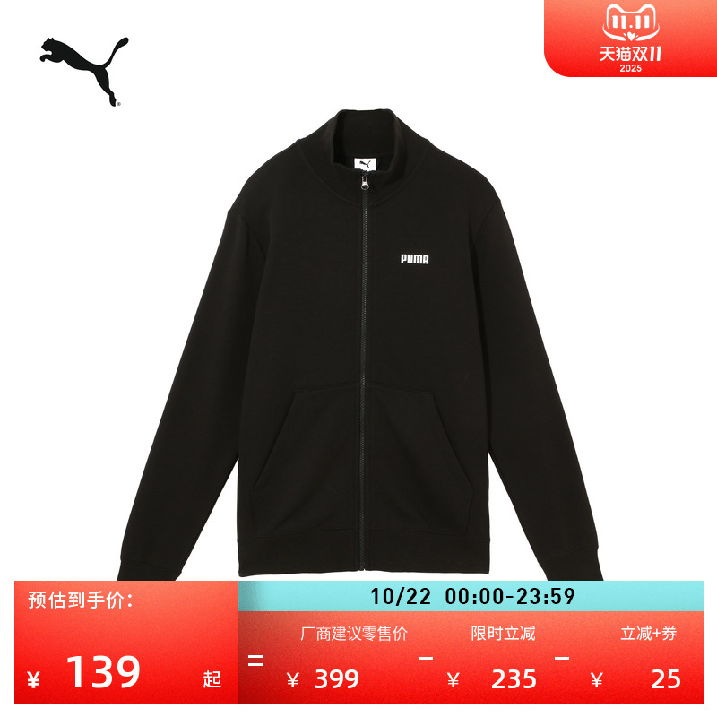 PUMA彪马外套男2025秋季新款男士黑色连帽休闲开衫运动夹克691345