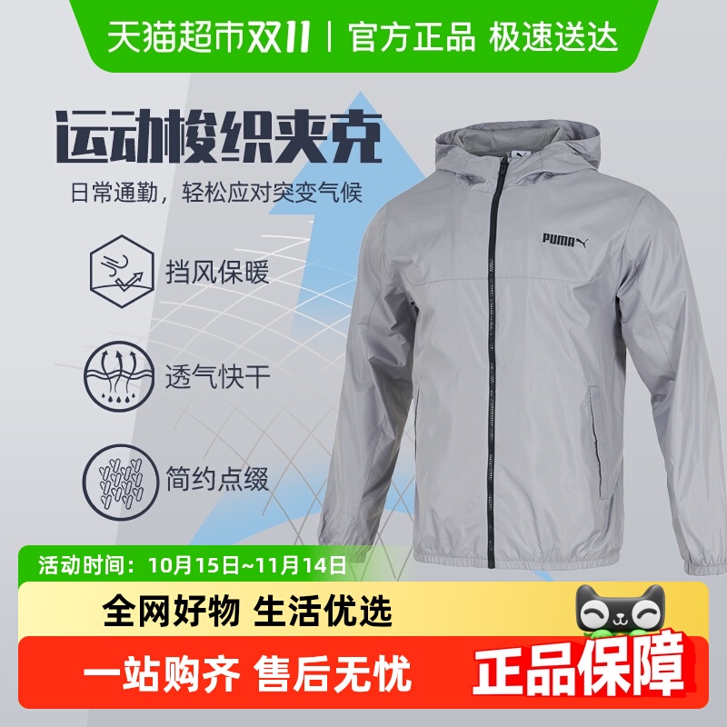PUMA彪马外套男款新款连帽开衫宽松透气休闲服运动上衣梭织夹克