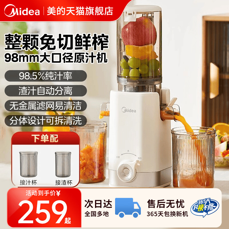 美的榨汁机新款榨水果自动小型家用电动打汁大口径原汁机官方正品