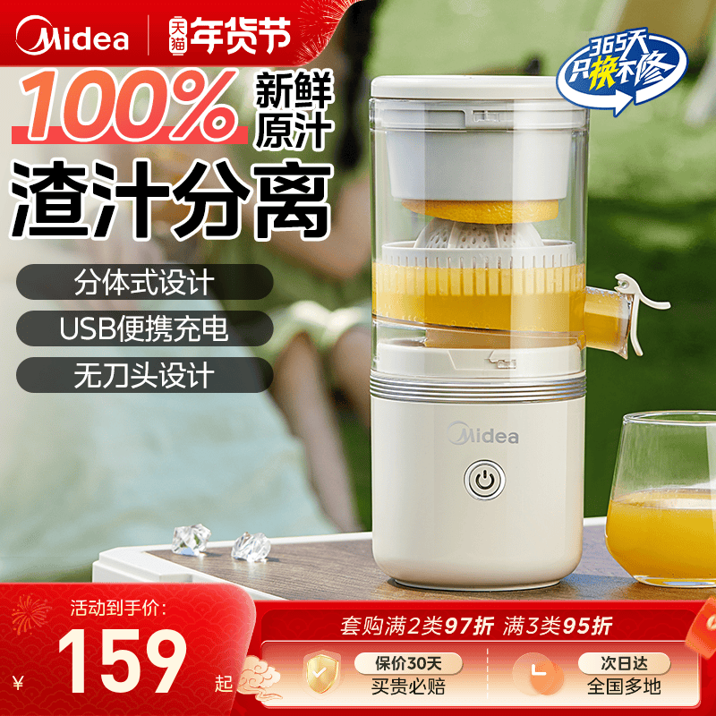 美的榨汁机渣汁分离全自动小型家用便携式迷你水果原汁机2025新款