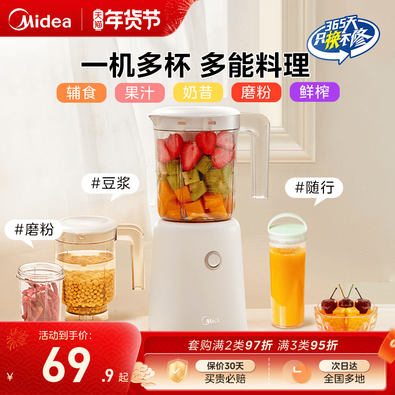 美的榨汁机家用多功能婴儿辅食全自动料理搅拌机电动绞肉果汁小型