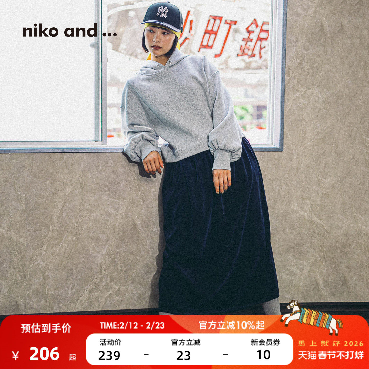 niko and ...连衣裙女2026春季新款撞色连帽针织长裙571839
