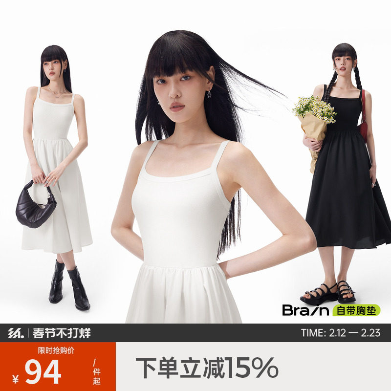 【捡漏价】半练带胸垫吊带裙薄纱连衣裙白色裙子秋季长裙连身裙女