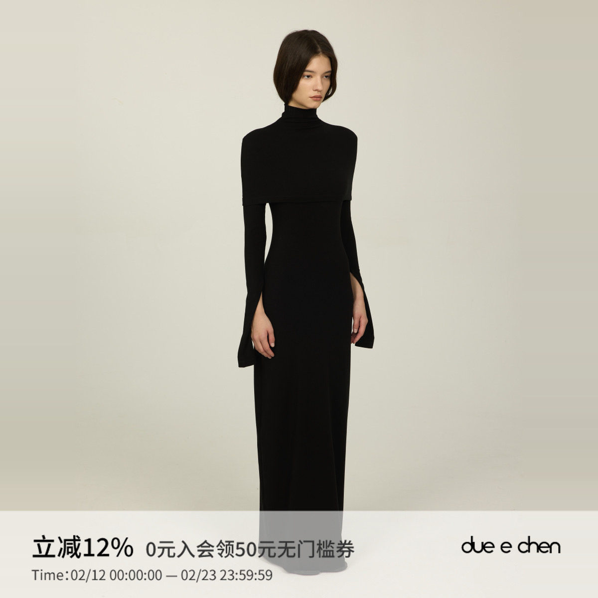 DUE E CHEN 原创设计两件套长袖斗篷针织连衣裙女高级感修身长裙