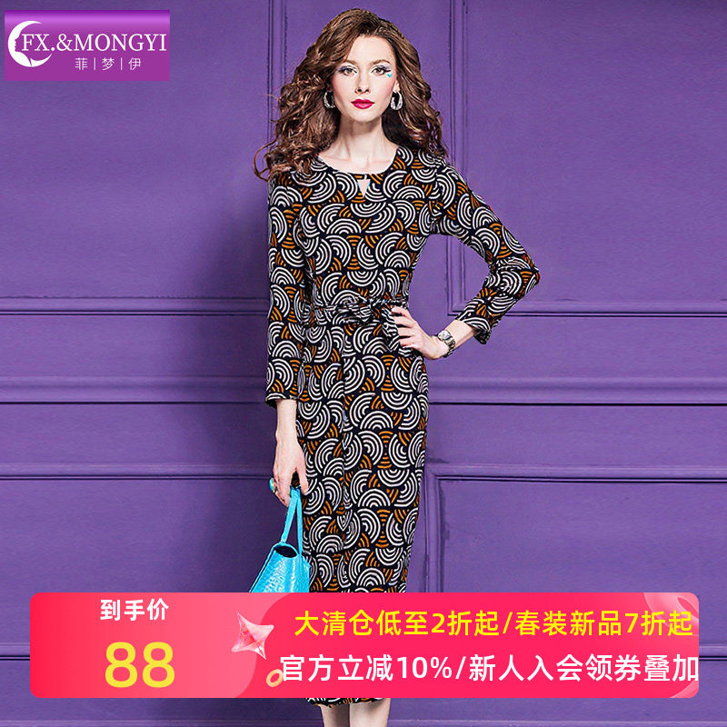 菲梦伊印花连衣裙女秋季复古高级感轻熟优雅气质阔太太中长款裙子
