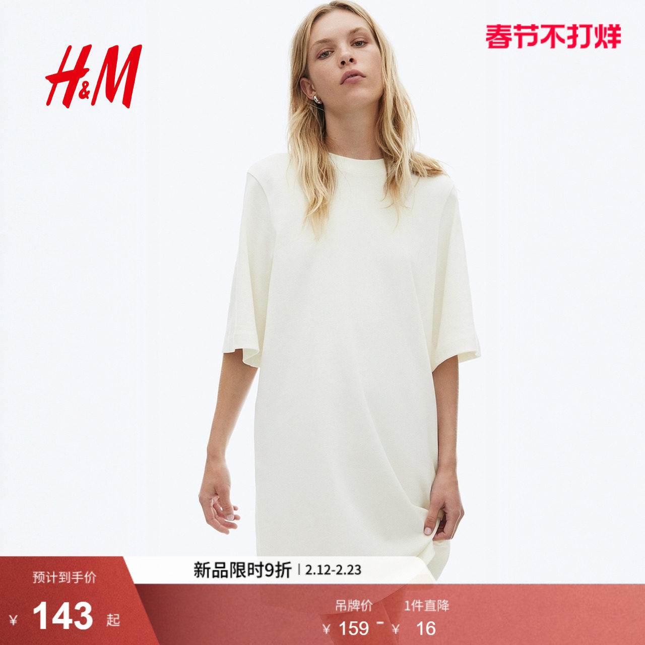 HM女装连衣裙春季简约美式宽松圆领短袖棉质T恤式连衣裙1290974