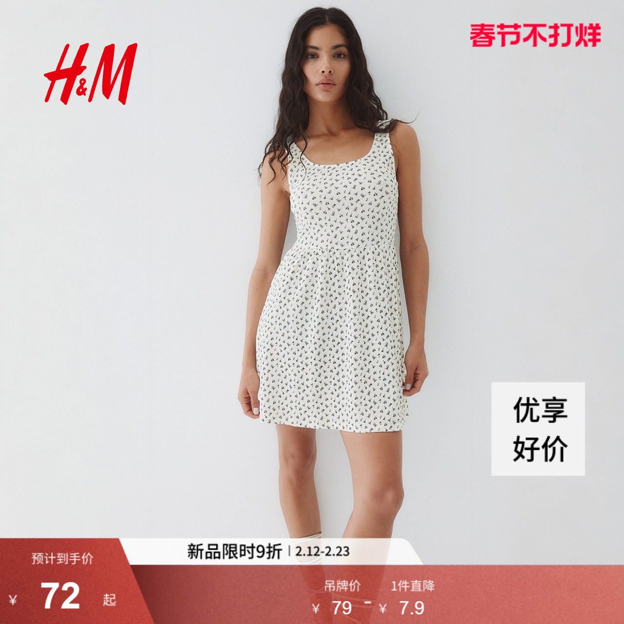 HM2女装花卉连衣裙春季吊带无袖皱褶针织连衣裙1295707