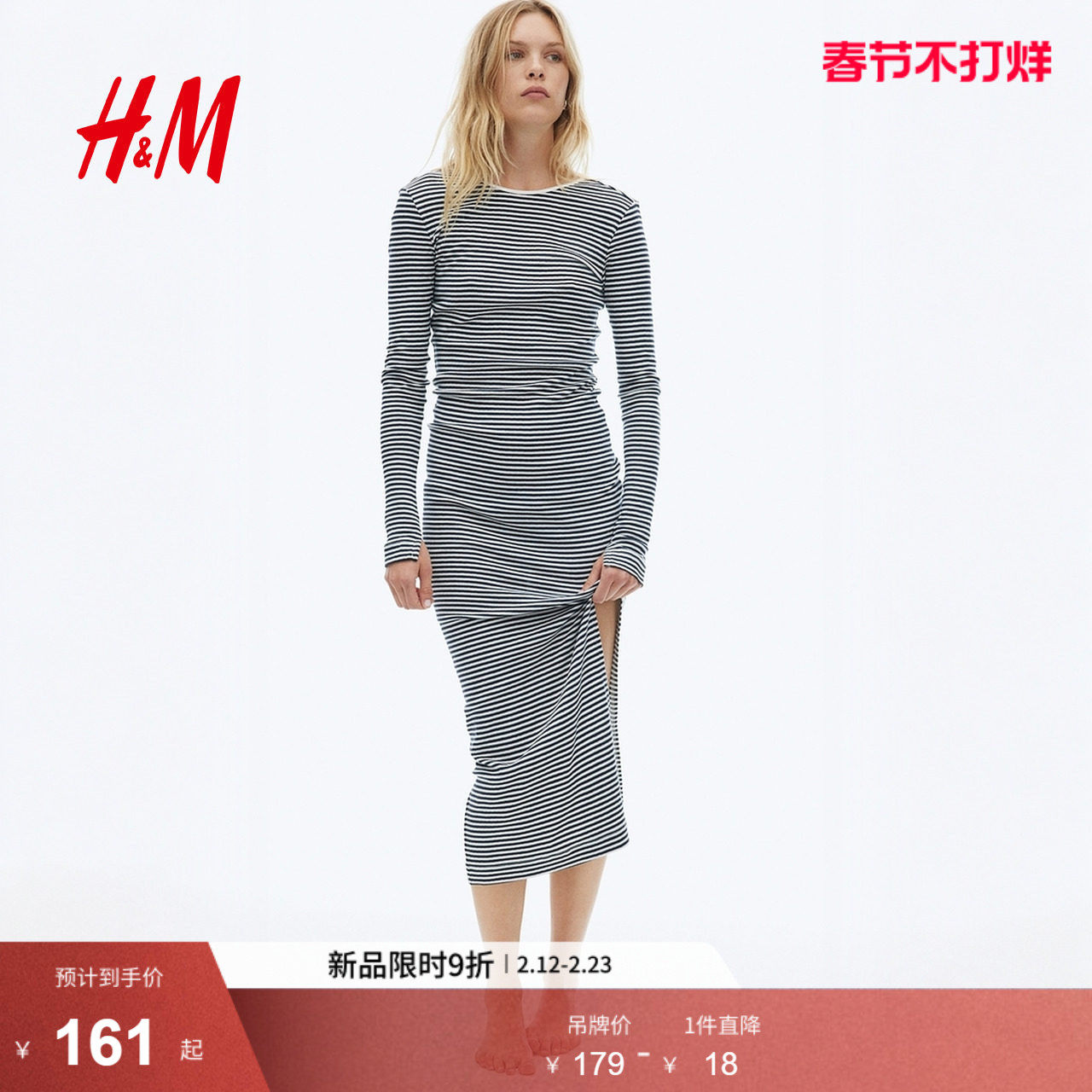 HM女装连衣裙春季气质时尚罗纹露背针织修身连衣裙1294161