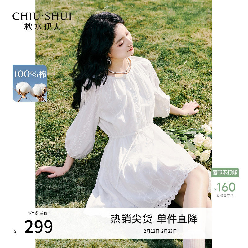 【100%棉】白色好看连衣裙女夏2026春季新款通勤绝美高级a字裙子