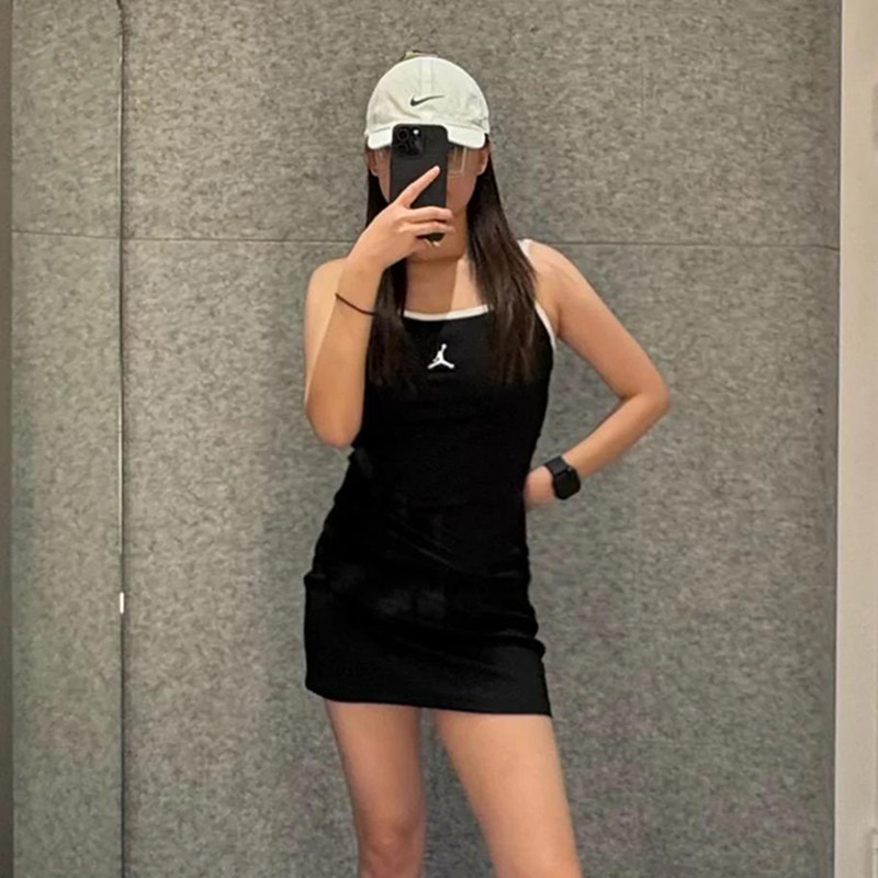 Jordan25新款Nike耐克女款连衣裙AJ刺绣紧身吊带罗纹运动裙HJ0063
