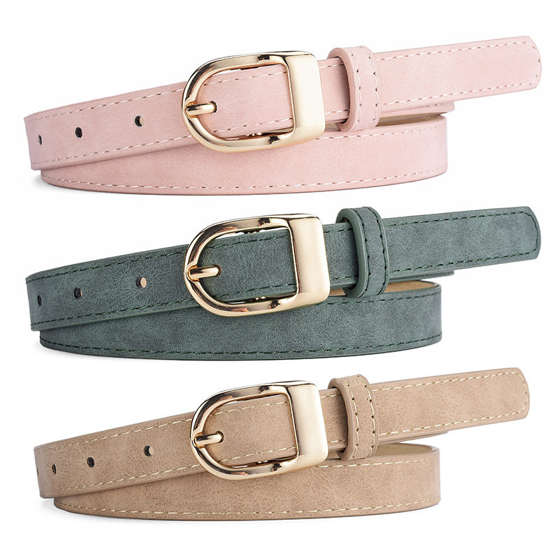 马卡龙粉浅绿克莱因蓝白卡其色D字亮金针扣女款连衣裙装饰皮腰带