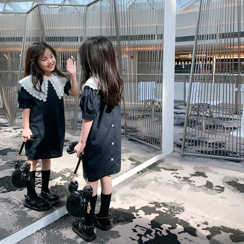 洋气法式大翻领母女款连衣裙亲子装2022夏季新款母女装女童裙子