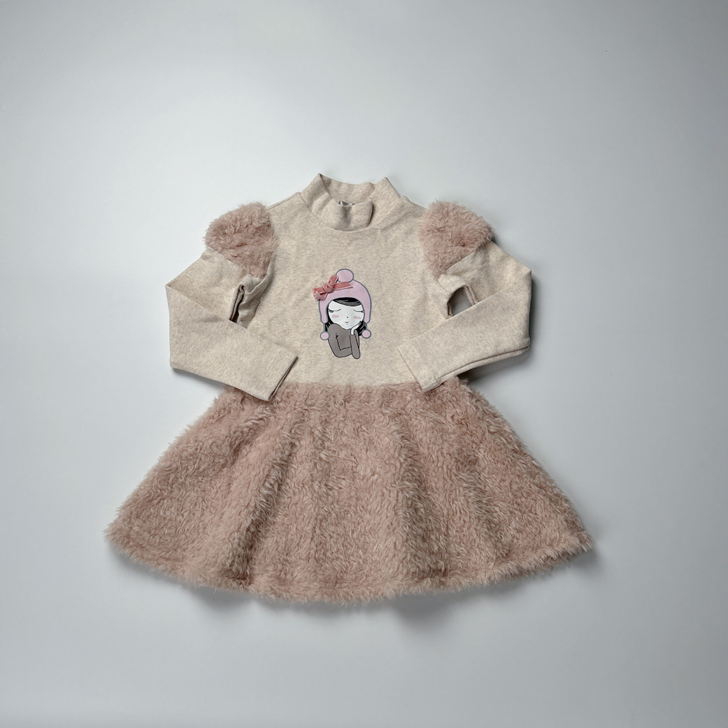 韩国童装秋冬款断码女童半高领柔软弹力淑女款连衣裙110-150A4