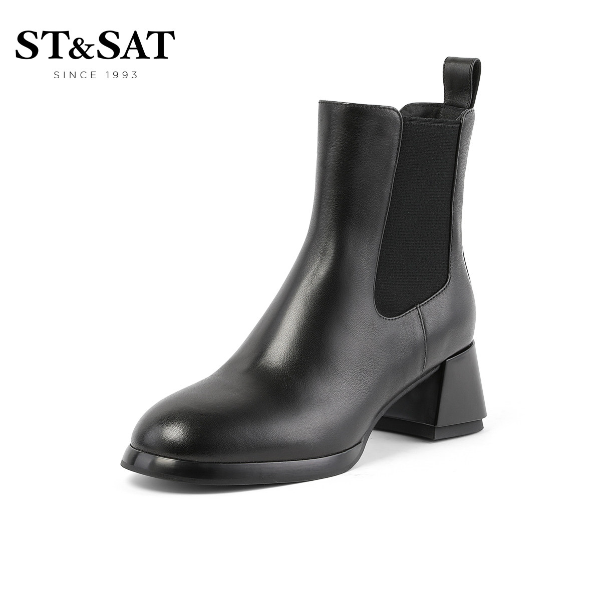 - 真皮中跟短靴女鞋