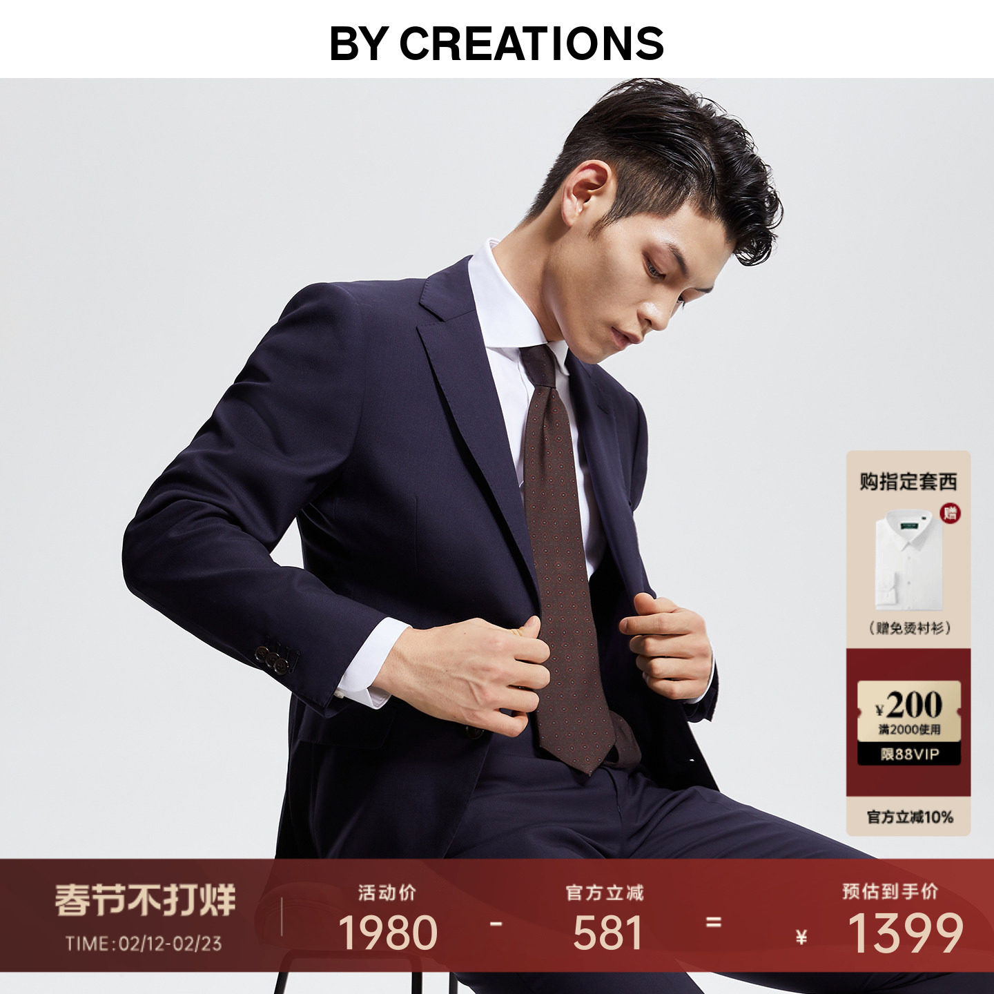 柏品130支纯羊毛商务西服套装男职业正装结婚婚礼新郎伴郎西装