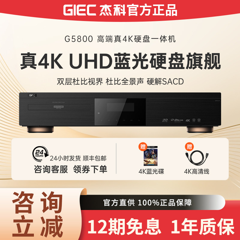 GIEC杰科G5600真4K蓝光播放机硬盘一体机杜比世界影碟机DVD全景声