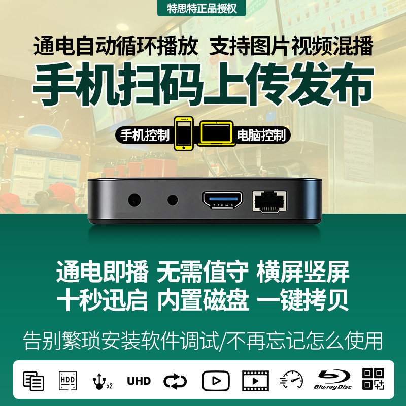 手机上传4K可竖屏拼接屏循环广告机盒子优盘高清播放器多媒体影音