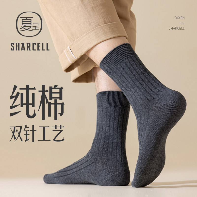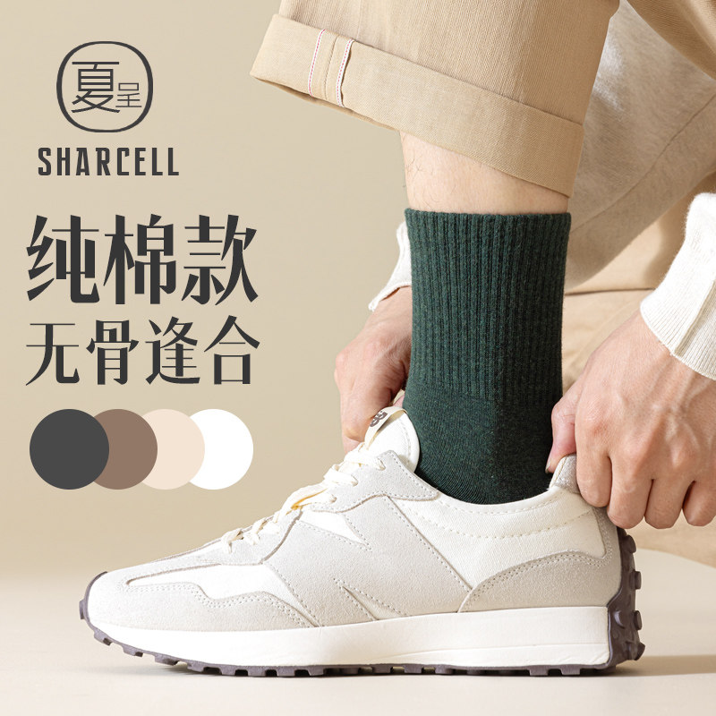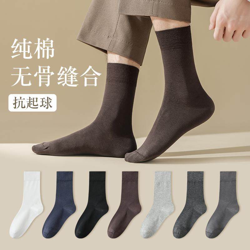 【100%棉】袜子男秋冬纯棉中筒袜抗菌防臭吸汗全棉袜商务男士长袜