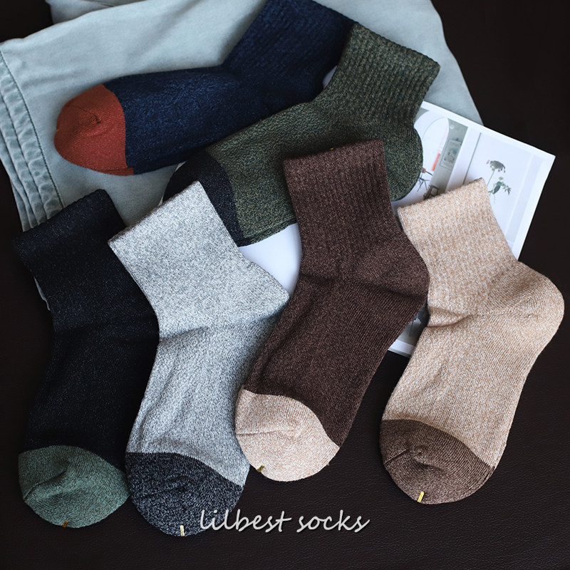 袜子男秋冬纯棉中筒袜个性复古撞色毛巾底加厚保暖吸汗运动潮长袜