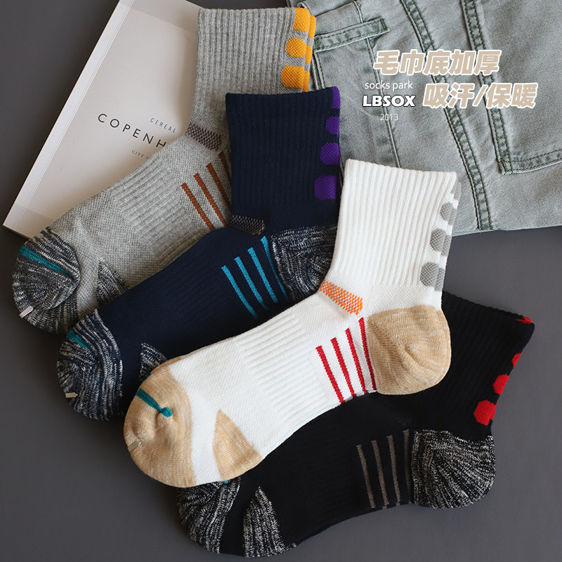 训练袜子男秋冬纯棉中筒袜毛巾底加厚吸汗保暖篮球精英运动长袜潮
