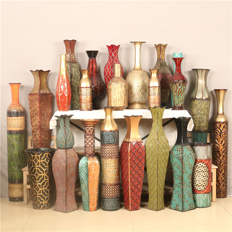 欧式宫廷风复古怀旧铁艺浮雕干花插花器家居桌面玄关创意花瓶摆件