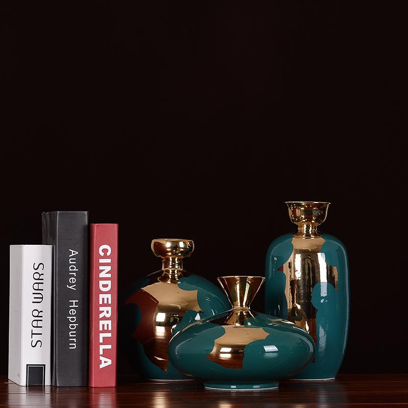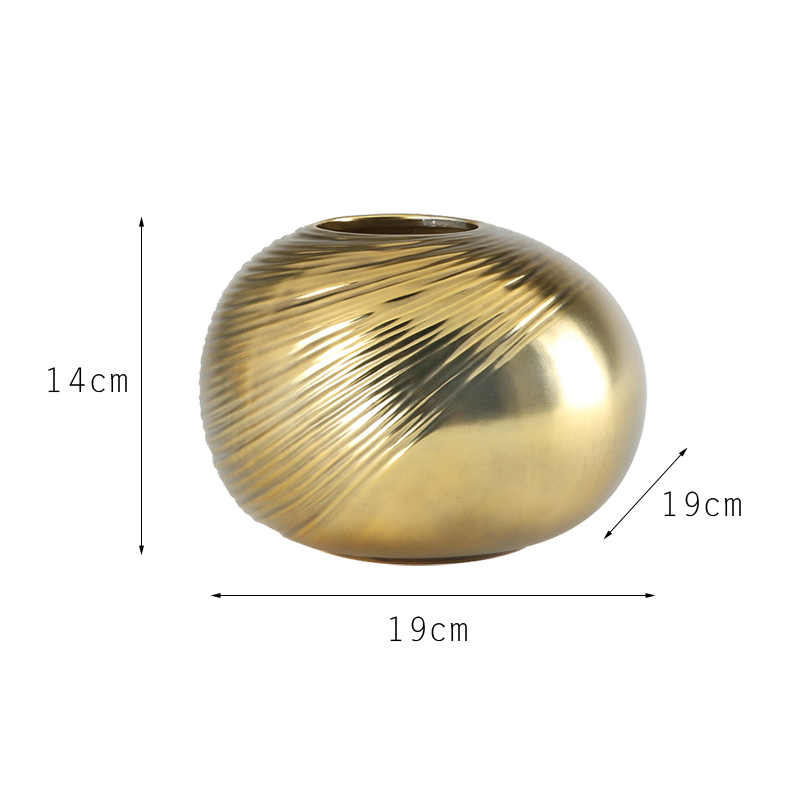 家居饰品创意花瓶摆件金色陶瓷干花花器现代简约埙形瓶轻奢样板房