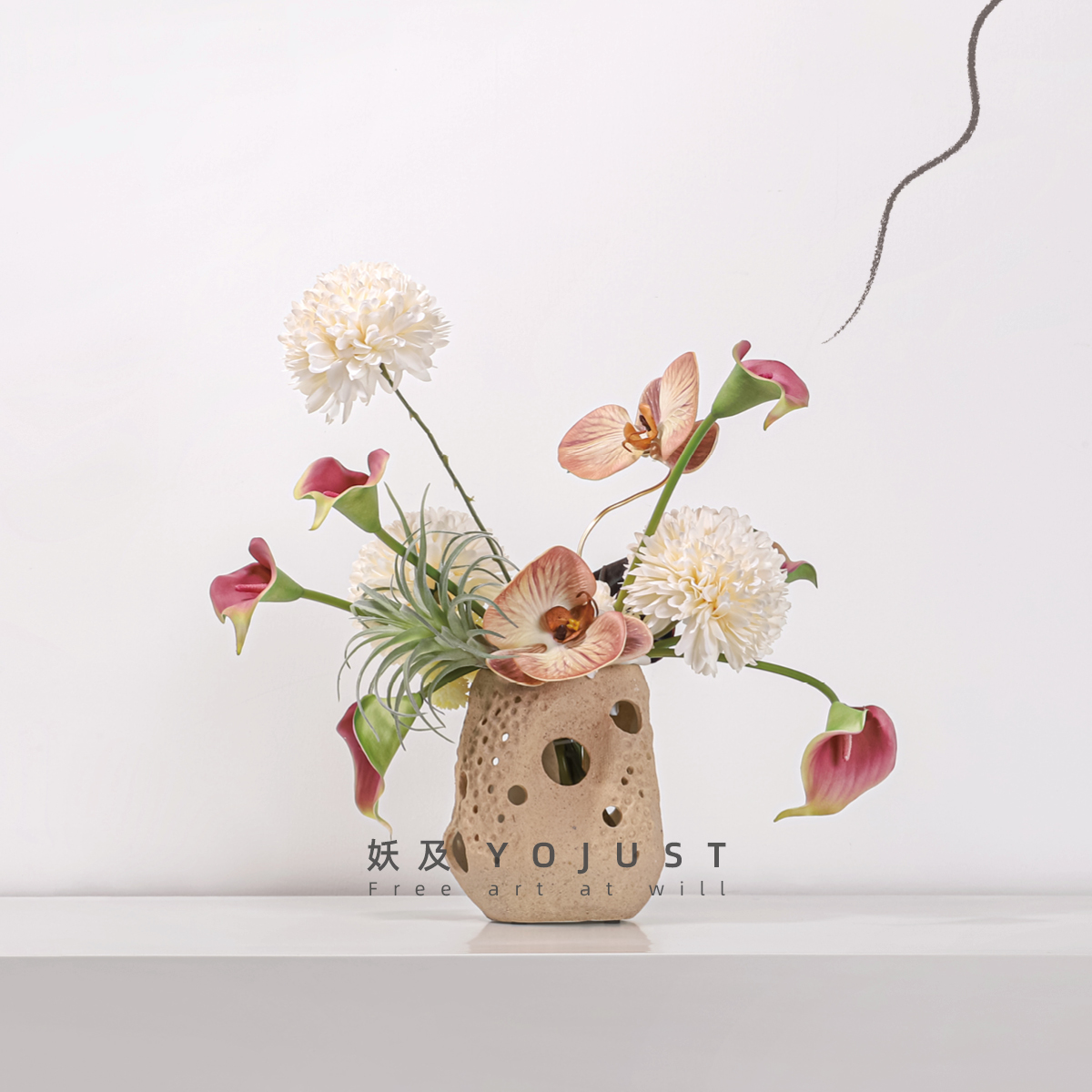 妖及样板间修饰的美花艺售楼处酒店欧式镂空陶瓷花器创意花瓶摆件