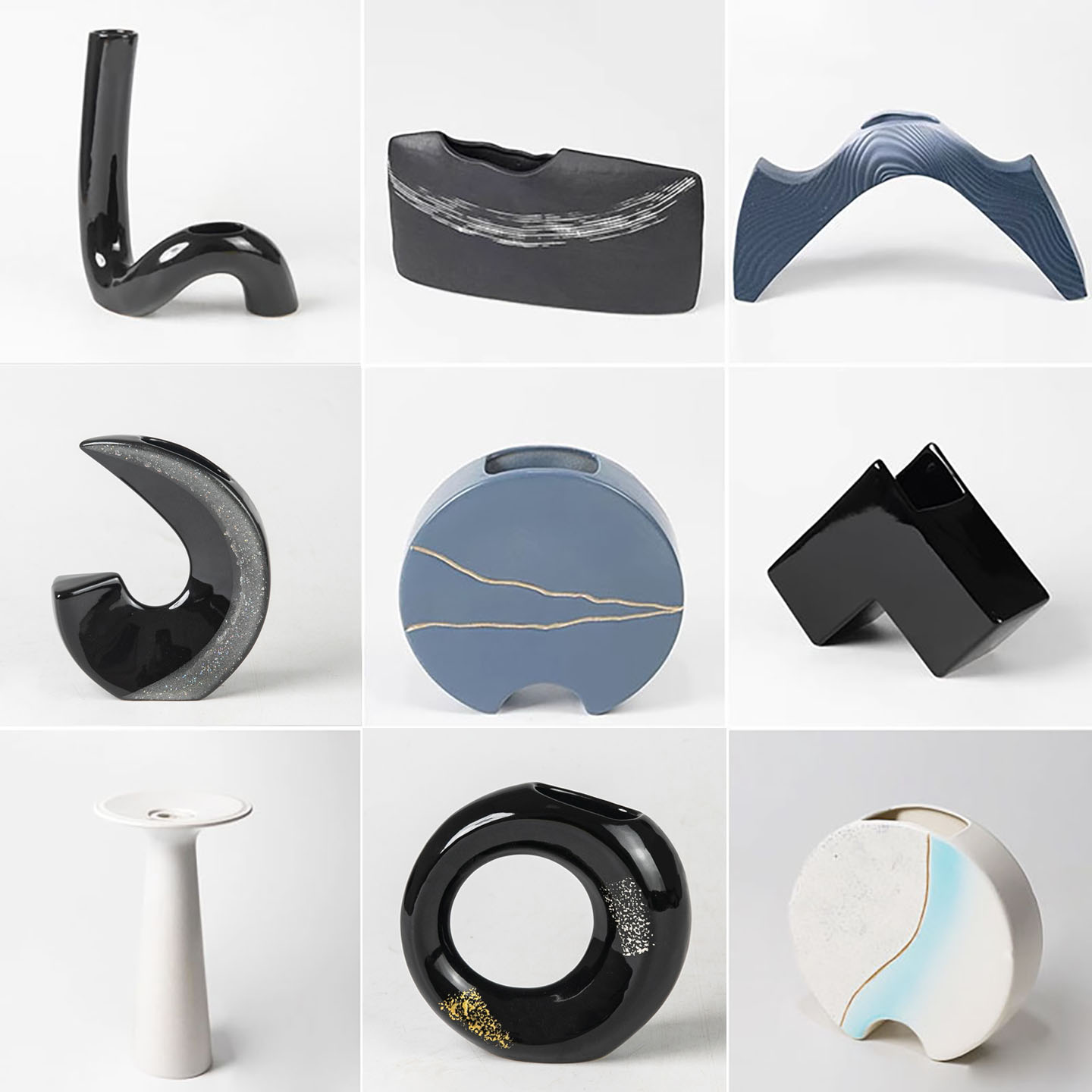 一匚 现代创意异形几何陶瓷装饰花器 样板间玄关会所创意花瓶摆件