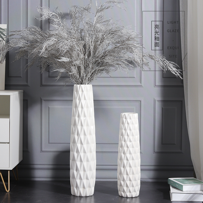 北欧创意花瓶摆件客厅大号落地高陶瓷简约干花插花装饰迷雾花套装