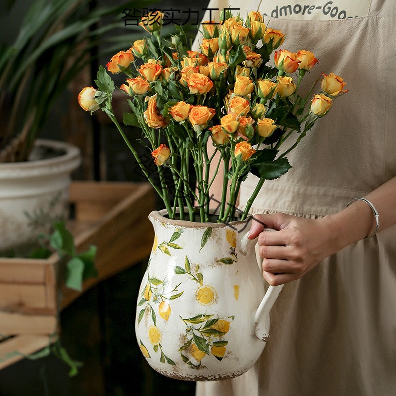 复古怀旧田园风陶瓷花壶瓶创意花瓶摆件客厅插花水培器皿创意美式