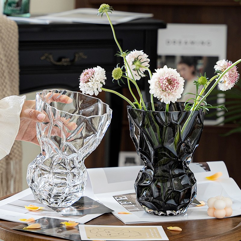 轻奢创意花瓶摆件高级感不规则玻璃插H花透明水养鲜花客厅餐桌装