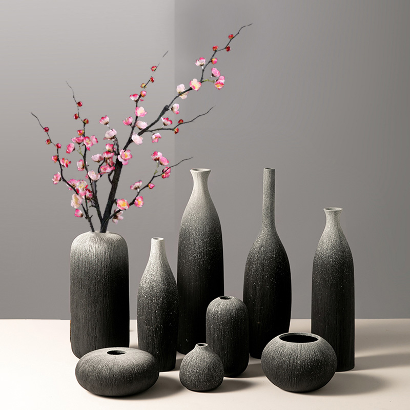 空合黑白棋盘格陶瓷花器 样板间售楼处客厅餐厅卧室创意花瓶摆件