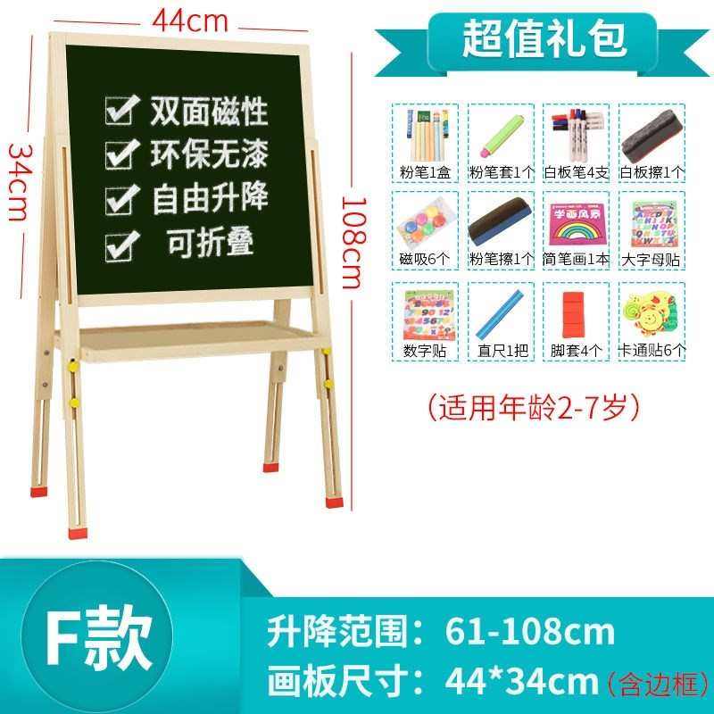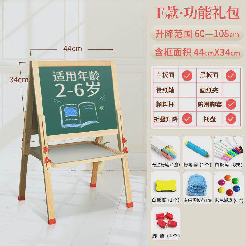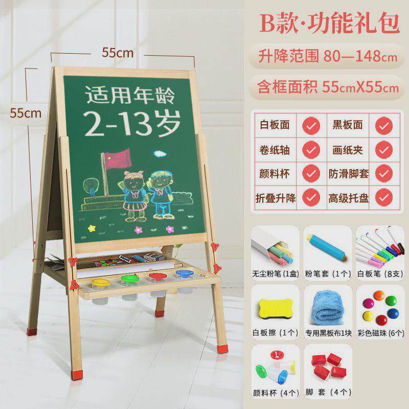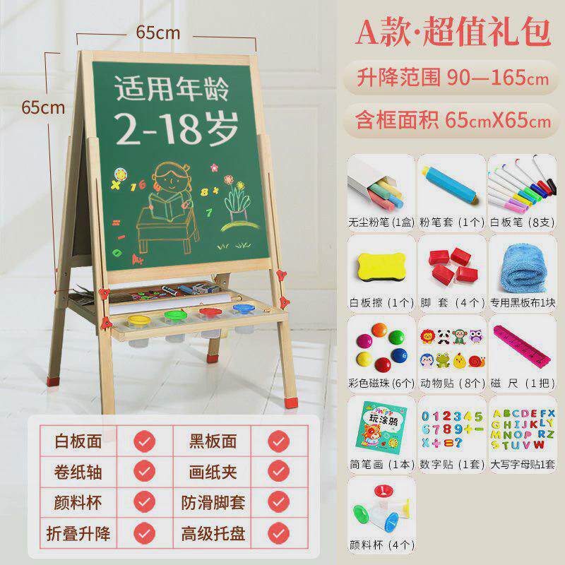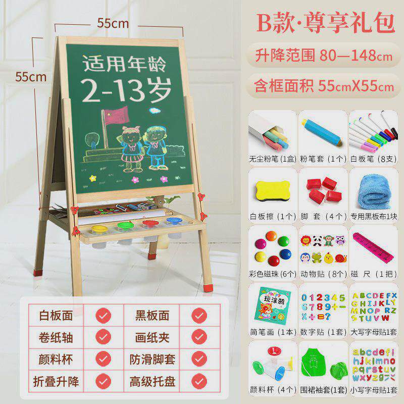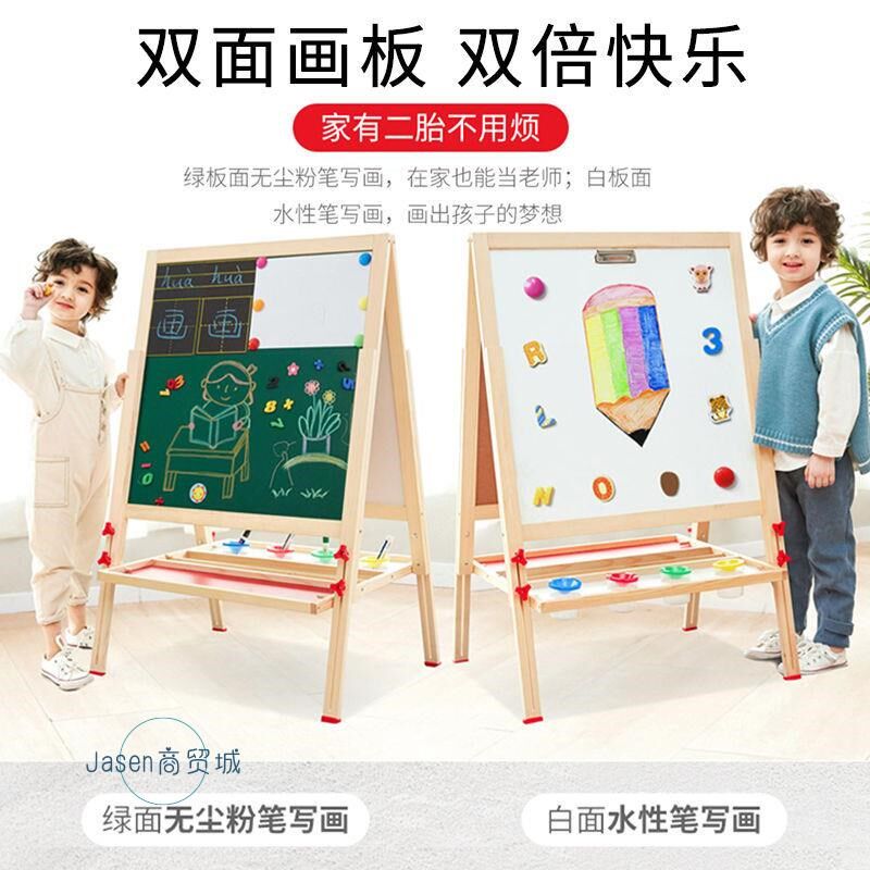 实木双面儿童画板画架磁性可升降小黑板支架式家用宝宝涂鸦写字板